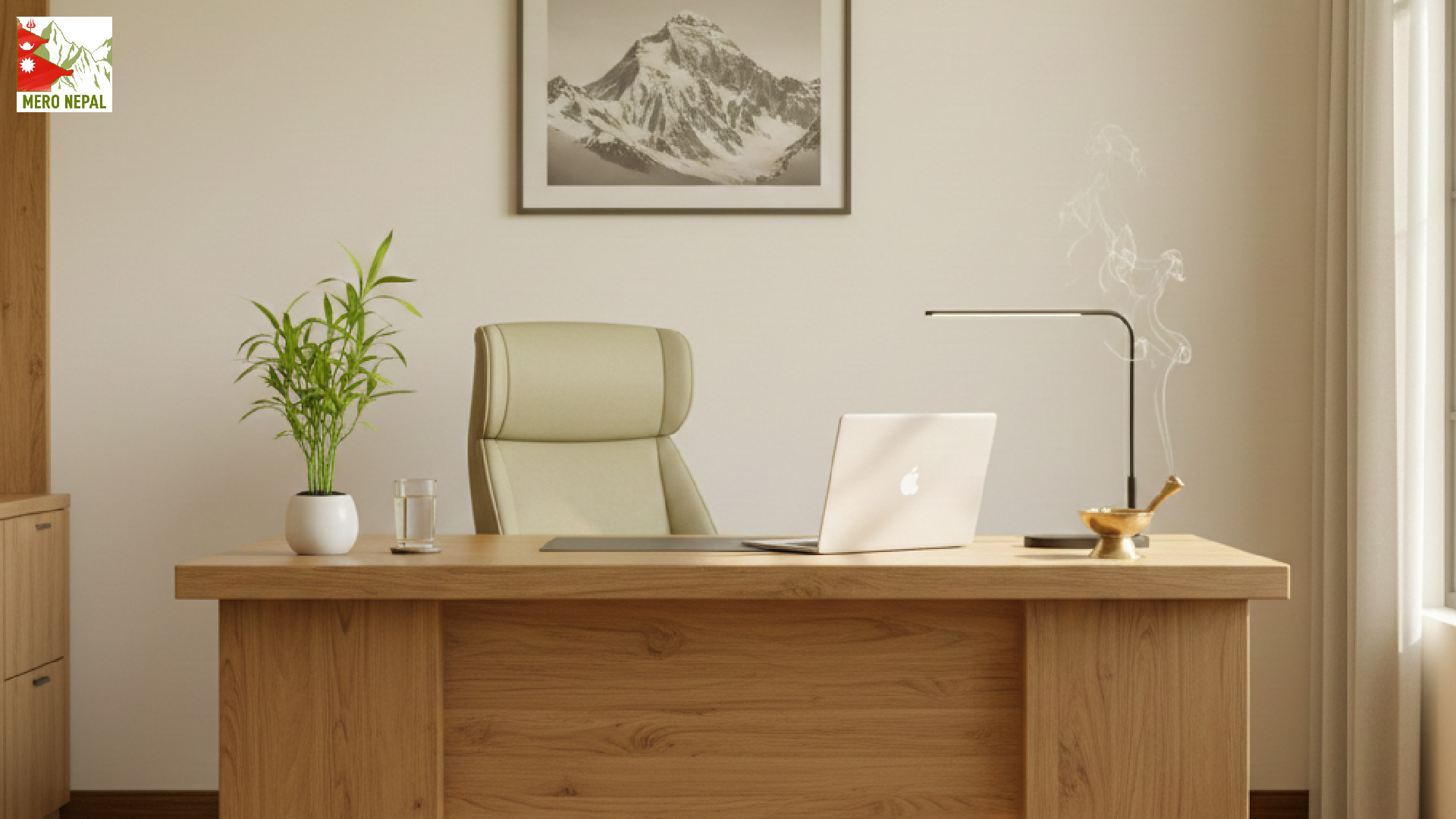 बिरुवा (Greenery): आफ्नो टेबलको उत्तर-पूर्व कुनामा एउटा सानो बाम्बु प्लान्ट (Bamboo Plant) वा मनी प्लान्ट राख्नुहोस्। यसले हावा शुद्ध गर्नुका साथै धन समृद्धिमा मद्दत गर्छ। काँडा भएका बिरुवाहरू अफिसमा कहिल्यै नराख्नुहोस्।